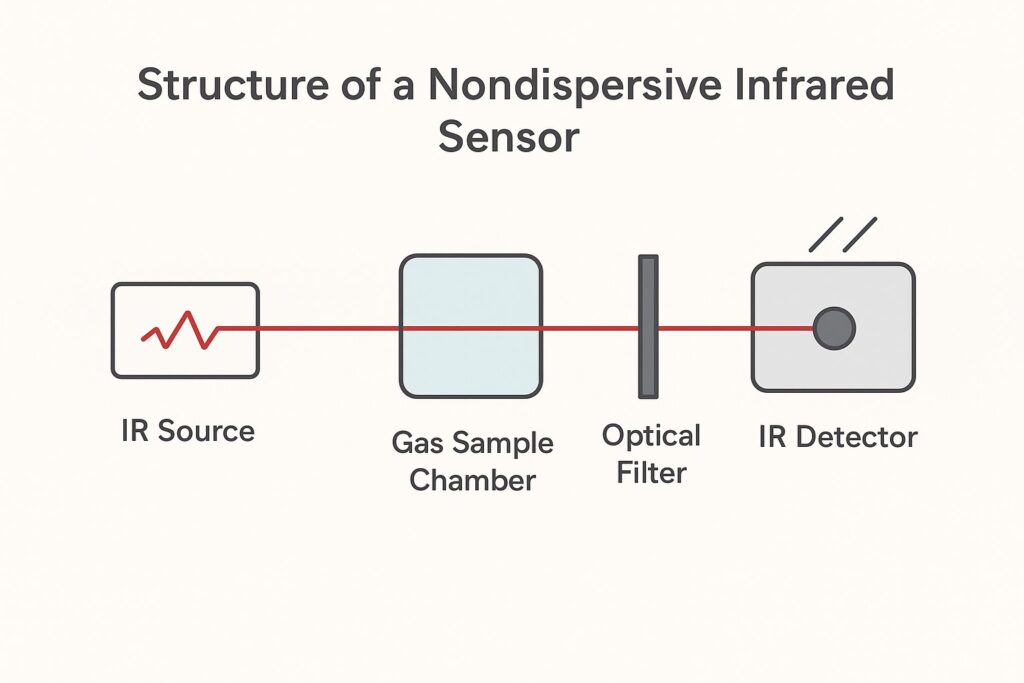 A non-dispersive infrared sensor relies on a clear and efficient optical layout that turns a simple idea into a stable measurement system. It starts with an infrared light source that sends energy through a defined gas cell. The optical path holds the sample, while a set of narrowband filters isolates the wavelengths linked to the target gas. A sensitive detector then measures how much light passes through, and the electronics convert that signal into a gas concentration. This structure may look straightforward, but each part plays a precise role in maintaining accuracy and reducing noise in harsh operating conditions.